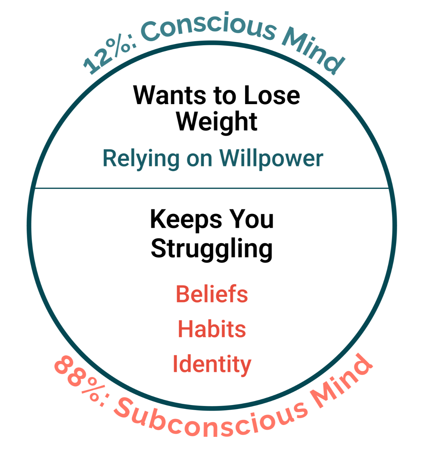 - Learn to use 100% of your mind for weight loss (Instead of only 12% willpower) so that you achieve your ideal weight and keep it off long term.