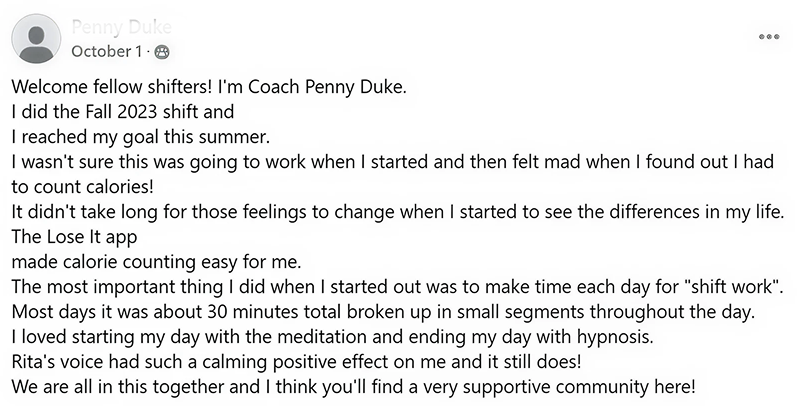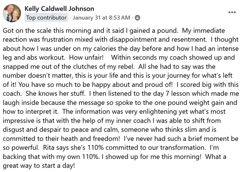We believe that long-term weight loss doesn’t start in the gym or on your plate…it begins in your mind. I was stuck in the struggle cycle for decades yo-yoing up and down 40 pounds. I finally broke free and released 40 pounds, and have kept that weight off for nearly three decades, and have helped thousands of others do the same.