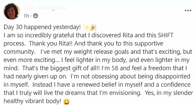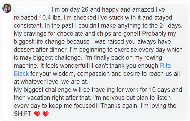 - Shift out of the frustrating subconscious roadblocks that are keeping you from consistent weight loss–despite all the effort you are using to lose weight.